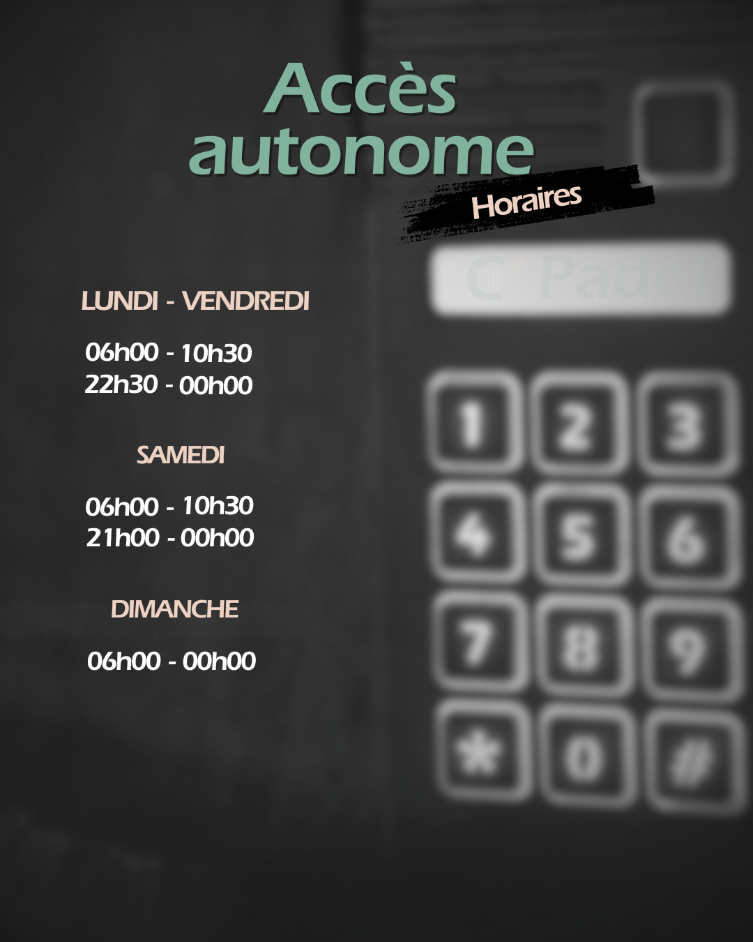 - Entrez par la porte autonome (entrée porte annotée « Accès Autonome »)